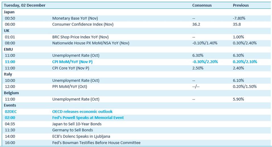 - Japon : indice de confiance des consommateurs (nov.), placement d'obligations souveraines à 10 ans