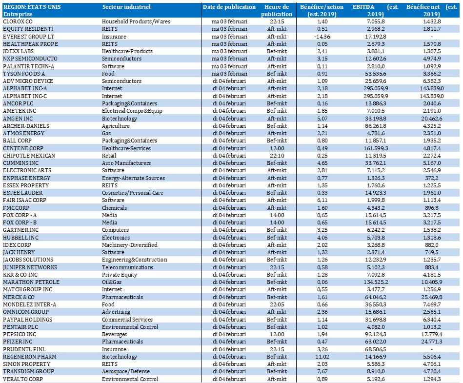 - TotalEnergies {{195703, TOTALENERGIES SE, TTE}} : la compagnie pétrolière publiera ses chiffres le 5 février : le chiffre d'affaires devrait chuter de 27,8 % à 42,76 milliards de dollars. Les analystes s'attendent à un bénéfice par action de 1,84 dollar.