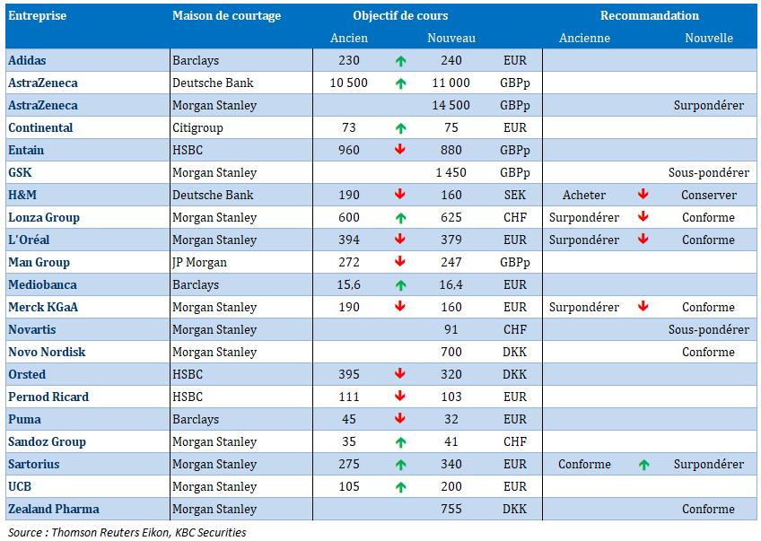 - Gimv {{29302, GIMV NV, GIMB}} : KBC Securities renoue avec le suivi de ce groupe de Private Equity au lendemain de son augmentation de capital de 247,0 millions d'euros. La nouvelle stratégie de l’entreprise marque le début d'une nouvelle phase de croissance censée doubler la taille du portefeuille à environ 3,5 milliards d'euros d'ici 2030, notamment grâce à une augmentation des prises de participation (jusqu'à 50 millions d'euros) et à des rendements plus élevés (jusqu'à 17,5 %). KBC Securities reprend son suivi sur un objectif de cours de 56 euros et une recommandation « Acheter ».