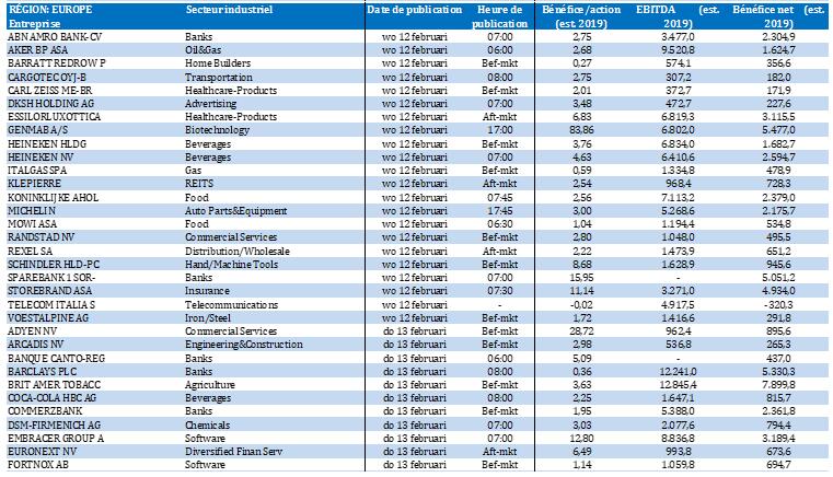 - Randstad {{245225, RANDSTAD NV, RAND}} : KBC Securities note que le bénéfice trimestriel de ce spécialiste néerlandais du recrutement s’avère supérieur aux attentes du marché grâce à un modèle d'entreprise résilient et à une solide performance malgré des conditions de marché difficiles. L'EBITDA avant éléments non récurrents (flux de trésorerie d'exploitation) s'élève à 200 millions d'euros au quatrième trimestre 2024, et dépasse donc la moyenne des prévisions des analystes (194 millions d'euros). Cependant, le résultat net se résume à une perte de 149 millions d'euros en raison d’une réduction de valeur sur le goodwill et d’ajustements de juste valeur. KBC Securities maintient un objectif de cours de 47,5 euros et une recommandation « Accumuler ».