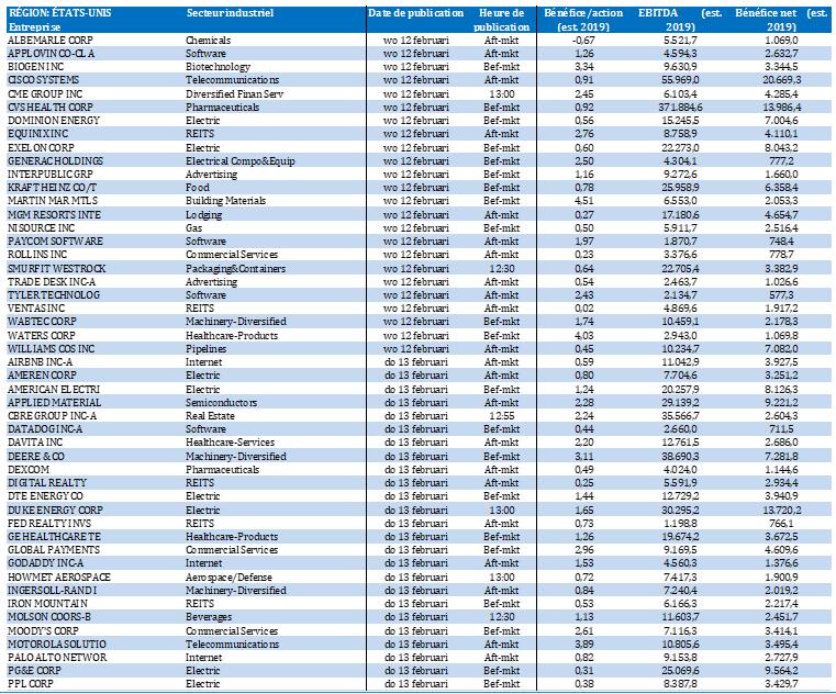 - Lyft {{249785985, LYFT INC., LYFT}} : la société de taxis basée sur une application mobile prévoit pour le premier trimestre un volume de réservations brutes situé entre 4,05 et 4,20 milliards de dollars – donc sous la barre des estimations (4,26 milliards de dollars). Au quatrième trimestre, le chiffre d'affaires a augmenté de 26,6 % à 1,55 milliard de dollars, en ligne avec les estimations de 1,56 milliard de dollars. Toujours au quatrième trimestre, le bénéfice ajusté par action s’élève à 0,29 dollar, bien au-delà de la moyenne des anticipations des analystes (0,22 dollar). Par ailleurs, Lyft vient d’annoncer son premier programme de rachat d'actions à hauteur de 500 millions de dollars.