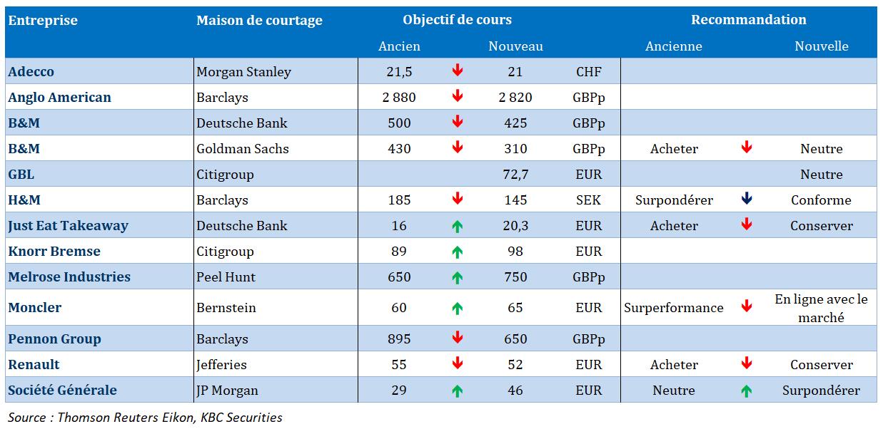 - Akzo Nobel {{1934316, AKZO NOBEL NV, AKZA}} : le groupe chimique néerlandais a conclu un accord avec sa filiale indienne en vue d'acquérir l'activité indienne Powder Coatings, ouvrant ainsi la voie à la vente de cette filiale indienne. La valeur de marché actuelle d’Akzo Nobel India s’élève à environ 1,65 milliard d'euros, ce qui porte la valeur de la participation d'Akzo à environ 1,2 milliard d'euros. Le management entend employer le produit de la vente à réduire son endettement, en partie, et au rachat d'actions. KBC Securities maintient sa recommandation « Conserver » avec un objectif de cours de 65 euros.