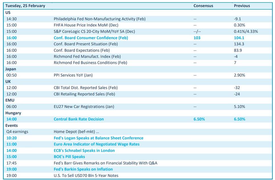 - États-Unis : confiance des consommateurs (fév.), indice de la Fed de Richmond (fév.), indice des prix des logements (déc.)
