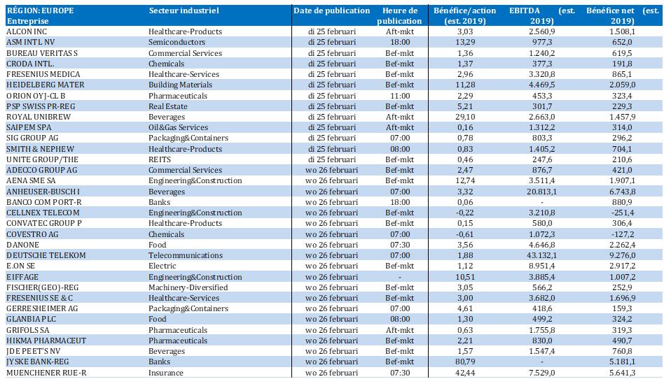 - Heidelberg Materials {{152371, HEIDELBERG MATERIALS AG, HEI}} : deuxième cimentier mondial, Heidelberg prévoit une nouvelle hausse de son bénéfice d'exploitation cette année après une année 2024 record. Le bénéfice courant du groupe devrait passer de 3,25 à 3,55 milliards d'euros en 2025, au lieu de 3,2 milliards d'euros en 2024, soit une hausse de 6 % en glissement annuel. « Grâce à notre ample présence géographique et à l'attention que nous portons à la gestion des coûts et des prix, nous avons réussi à plus que compenser la baisse de la demande dans certaines régions », a déclaré le CEO Dominik von Achten.