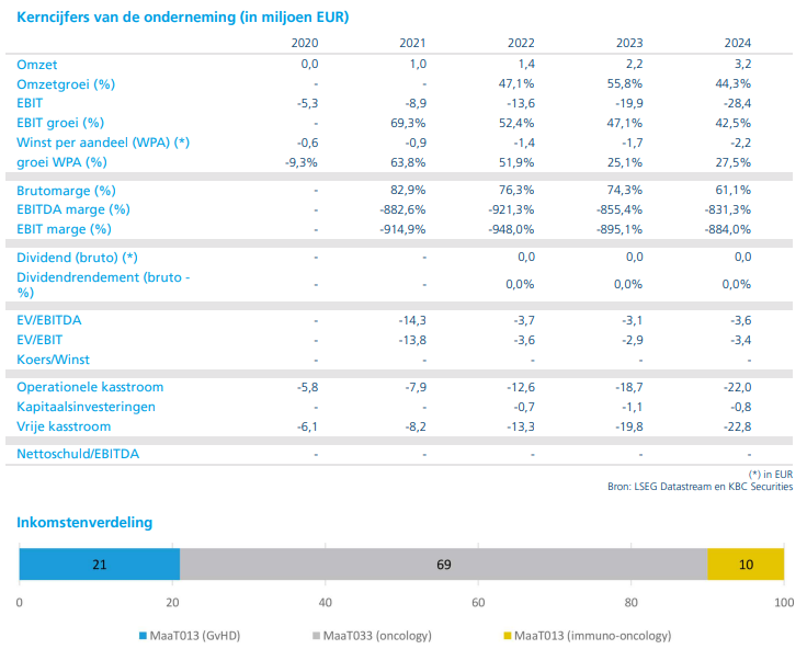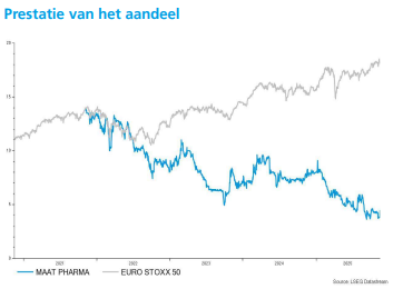 - Het biotechnologiebedrijf heeft een kapitaalverhoging van 9,1 miljoen euro afgerond (met een korting van 9% op de slotkoers) en zal de netto-opbrengst van 8,7 miljoen euro gebruiken voor de voorbereiding van Xervyteg-commercialisatie in Europa, de ontwikkeling van MaaT033 en een cruciale Amerikaanse studie in 2026. Deze kapitaalverhoging activeert een tranche van 6 miljoen euro van de EIB, waardoor de kaspositie wordt verlengd tot augustus 2026; bij verwachte EU-goedkeuring van Xervyteg in midden 2026 ontvangt MaaT een mijlpaalbetaling van 12 miljoen euro van Clinigen, wat de runway verlengt tot begin 2027. KBCS handhaaft de “Kopen”-aanbeveling maar verlaagt het koersdoel van 17 euro naar 15 euro.