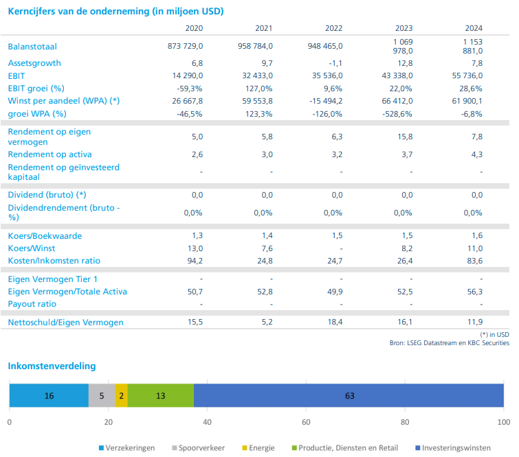 Berkshire Hathaway is een gediversifieerd conglomeraat onder leiding van Warren Buffett en zijn adjuncten (Greg Abel, Ajit Jain). Buffett wordt door velen beschouwd als de beste belegger aller tijden omwille van zijn uitzonderlijk hoge beursrendementen. Zelf heeft hij meer dan 35% van de aandelen van Berkshire in handen. Indien je in Berkshire investeert, investeer je indirect in zowel beursgenoteerde als niet-beursgenoteerde Amerikaanse bedrijven.