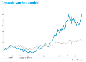 Wim Hoste blijft positief over TITAN en verhoogt het koersdoel van 55 euro naar 56 euro, met een "Opbouwen"-aanbeveling. Midden november werd het koersdoel voor TITAN al fors opgetrokken.