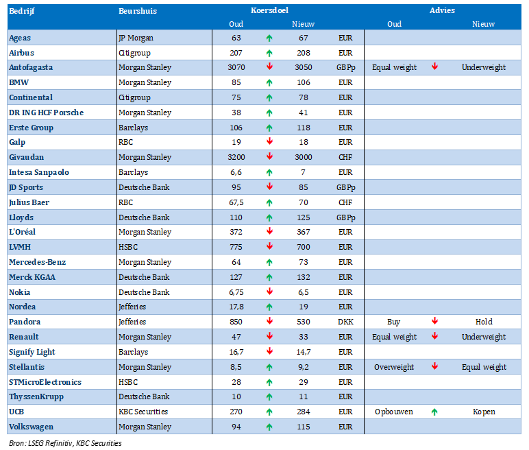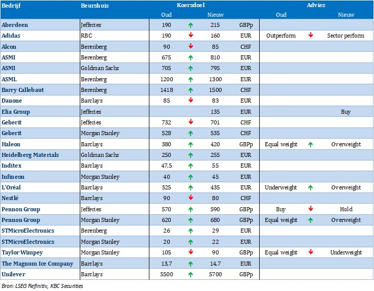 Nieuwe aanbevelingen voor aandelen