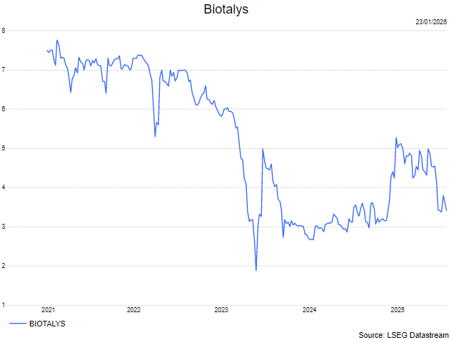 - De Belgische ontwikkelaar van eiwitgebaseerde biocontroles sluit een strategisch partnerschap met het Deense 21st.BIO om de productie van zijn AGROBODY oplossingen sneller en tegen concurrerende kosten op te schalen via een nieuw precisiefermentatieplatform. Met het einde van de samenwerking met Novonesis moet Biotalys wereldwijd nieuwe productie en distributiepartners vastleggen om de commercialisering van EVOCA NG voor te bereiden, waarvan de registraties worden verwacht in 2028 29 in de VS en 2029 30 in de EU. Het bedrijf bevestigt een kaspositie tot mei 2026 en overweegt bijkomende financiering, onder meer via equity van institutionele en mogelijk bestaande aandeelhouders, om de lancering van EVOCA NG en de verdere ontwikkeling van zijn AGROBODY portfolio te ondersteunen. Geen impact op de “Kopen”-aanbeveling en koersdoel van 7,5 euro.