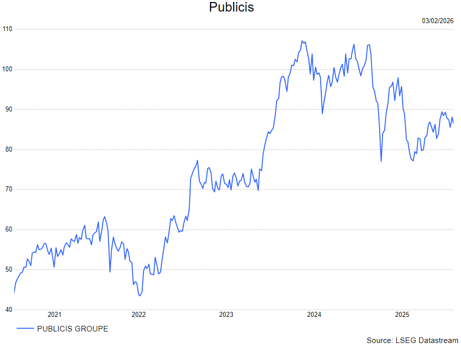 - Publicis verwacht in 2026 een organische groei van 4 à 5%, gesteund door investeringen in data- en AI-diensten. In 2025 realiseerde het bedrijf 5,6% groei en een nettowinst van 14,5 miljard euro, waarmee het zijn voorsprong op concurrenten verder vergrootte. Publicis haalde grote contracten binnen bij onder meer Coca-Cola, Mars, PayPal, Nespresso en LinkedIn. Voor 2026 wordt 900 miljoen euro gereserveerd voor overnames.