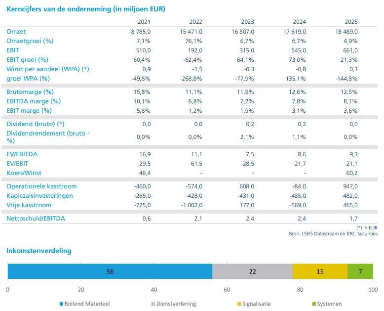 - Akzo zag in het vierde kwartaal de aangepaste EBITDA 4% dalen, volledig in lijn met de eigen verwachtingen maar 2% onder de gemiddelde analistenverwachting. De vooruitblik voor 2026 – een aangepaste EBITDA van minimaal 1,47 miljard euro – ligt 2% onder de KBCS-raming en 4% onder de gemiddelde verwachting. De geplande fusie met Axalta wordt pas eind 2026 of begin 2027 verwacht. Gezien de volatiele historiek en de beperkte structurele groei handhaaft KBCS de "Houden"-aanbeveling en een koersdoel van 65 euro.