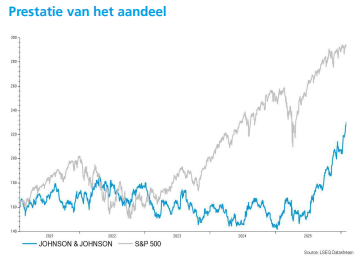Johnson & Johnson (J&J) publiceerde een sterker dan verwacht vierde kwartaal, aangevuld met een groeiverwachting die boven de gemiddelde markverwachting ligt. Volgens KBC Securities‑analist Andrea Gabellone presteren de productlijnen robuust, ondanks de impact van de patentvervaldatum van Stelara, en positioneert dit J&J opnieuw als een van de best groeiende farma‑reuzen.