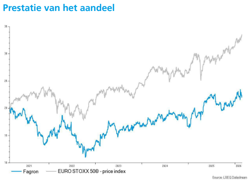 - De Belgische staalkabel‑ en materiaaltechnologiegroep rapporteerde een uEBIT in 2025 in lijn met zowel de eigen richtlijnen als de gemiddelde analistenverwachting. De vooruitzichten voor 2026 zijn voorzichtiger dan verwacht, maar de sterke vrije kasstroom en solide balans ondersteunen verdere M&A‑activiteiten en een jaarlijkse aandeleninkoop van circa 100 miljoen euro. Samen met het dividend resulteert dit in een aantrekkelijk aandeelhoudersrendement van ongeveer 9%. Geen impact op de “Kopen”‑aanbeveling en koersdoel van 55 euro.