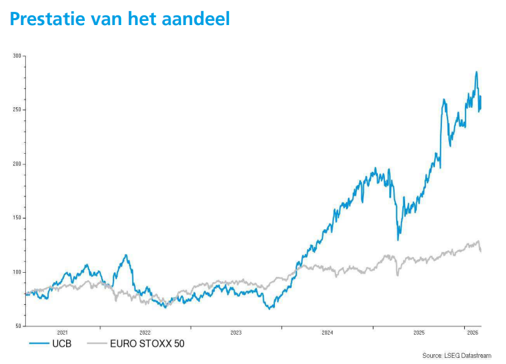 - De biofarmagroep maakte positieve topline‑resultaten bekend uit de BE BOLD‑studie, waarin Bimzelx een statistisch significante superioriteit aantoonde tegenover Skyrizi bij volwassenen met actieve psoriatische artritis. De studie bereikte het primaire eindpunt, ACR50 na 16 weken, wat een belangrijke doorbraak is aangezien psoriatische artritis de op één na grootste markt is voor dit type behandelingen. Deze head‑to‑headresultaten versterken de commerciële positie van Bimzelx, zeker omdat IL‑23‑therapieën tot dusver marktaandeel hadden gewonnen ten opzichte van IL‑17‑behandelingen in dit segment. KBC Securities handhaaft een koersdoel van 284 euro en de “Kopen”-aanbeveling.