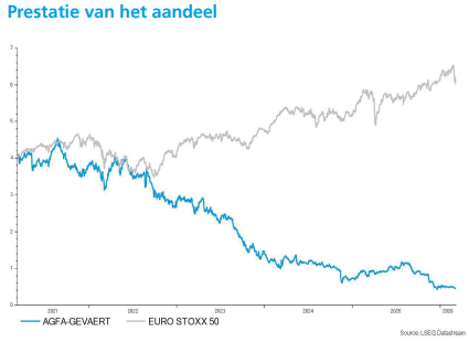- De beeldvormings‑ en IT‑groep zette in het vierde kwartaal van 2025 een sterke prestatie neer, met een bedrijfswinst (EBIT) van 29 miljoen euro op een omzet van 306 miljoen euro, duidelijk boven de verwachtingen dankzij uitzonderlijk sterke resultaten bij Digital Printing Solutions en HealthCare IT. Hoewel 2025 als geheel een bijzonder uitdagend jaar was, bewezen de groeiactiviteiten in HealthCare IT en Digital Print & Chemicals hun waarde, ondersteund door doorgedreven kostenbesparingen, een versnelde overstap naar een cloudabonnementsmodel in Noord‑Amerika en een sterke bijdrage van Zirfon binnen Green Hydrogen Solutions. Tegelijk bleef de druk in de traditionele medische filmmarkten aanhouden, wat Agfa ertoe aanzette de kostenbasis verder te optimaliseren met eind 2025 gerealiseerde jaarlijkse besparingen van 36 miljoen euro en een strikte focus op kosten‑ en kasdiscipline in 2026. KBC Securities handhaaft een koersdoel van 1 euro en de “Houden”-aanbeveling.