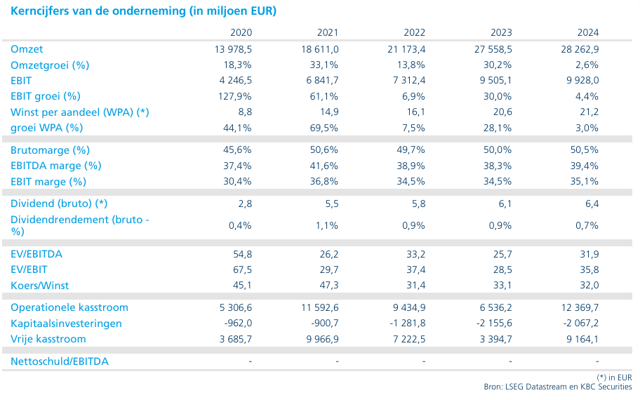Zelfs wanneer uitgegaan wordt van een versnelde winstgroei in de komende jaren en de historische gemiddelde koers‑winstverhouding wordt toegepast op de verwachte winst per aandeel in 2028, blijft de waardering volgens KBC Securities onder de huidige mediane koersdoelen in de markt.
