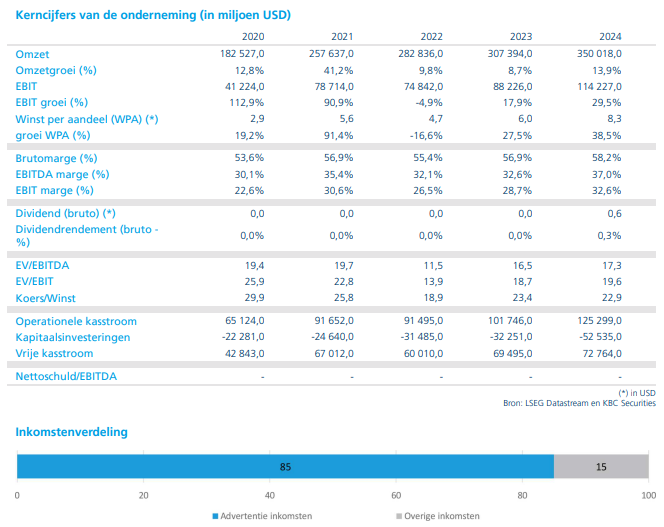 Het aandeel Alphabet is door de recente koersstijging niet langer een koopje. Het noteert nu ongeveer even duur als andere grote techbedrijven. Volgens Ruts is dit echter gerechtvaardigd gezien de sterke positie en toekomstperspectieven van Alphabet. Kurt handhaaft zijn positieve visie op Alphabet. De aanbeveling blijft een "Kopen". Het koersdoel wordt verhoogd van 325 dollar naar 365 dollar. Eind oktober had Kurt het koersdoel voor Alphabet als eens stevig opgetrokken.