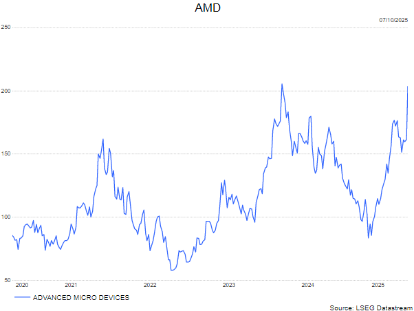 AMD en OpenAI kondigden gisteren een strategisch partnerschap aan waarbij OpenAI zich verbindt tot de aankoop van AMD-chips voor de uitbouw van 6 gigawatt (GW) aan datacenters. De uitrol van de eerste GW staat gepland voor de tweede helft van 2026. AMD verwacht ‘tientallen miljarden aan omzet’ per uitgerolde GW.