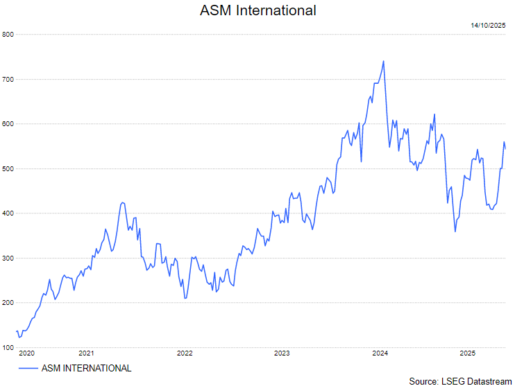 ASMi blijft volgens KBC Securities-analist, Thibault Leneeuw, de voorkeurskeuze binnen de halfgeleidersector. Tijdens de recente Capital Markets Day (CMD) werden de groeidoelstellingen tot 2030 toegelicht, met een verwachte jaarlijkse groei van 12 procent. Hoewel de marktverwachtingen voor wafer fab equipment (WFE) volgens Noyens te optimistisch blijven, ziet hij een solide langetermijnpositie voor ASMi, ook in het licht van de risico’s in China.
