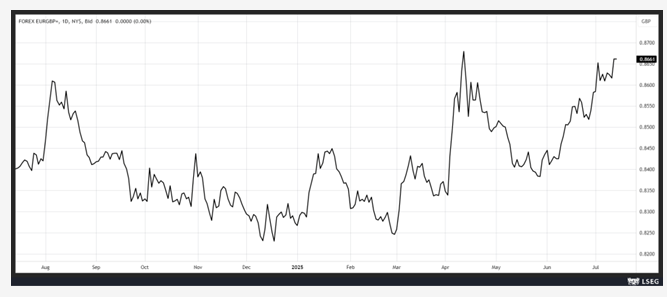 Terwijl de Britse economie in het eerste kwartaal nog sterk groeide, doen deze cijfers vrezen voor een zwakke groei in het tweede kwartaal, wat deels de daling van het pond ten opzichte van de euro verklaart.