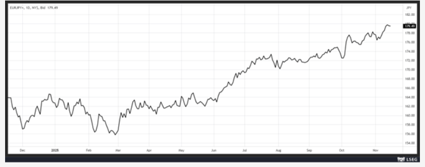 Deze week zouden de eerste indicatoren uit de VS verschijnen na de sluiting van de overheid, waaronder het cijfer voor nieuwe banen, dat donderdag wordt verwacht.Intussen blijft het grote onderwerp de kans op een renteverlaging in december door de FED, die vrijdag op 40% stond. De uitspraken van de FED-leden gaan bijna allemaal in dezelfde richting. Zo verklaarde Beth Hammack, voorzitter van de FED van Cleveland: “Het is niet evident dat het monetair beleid op dit moment meer moet doen.”