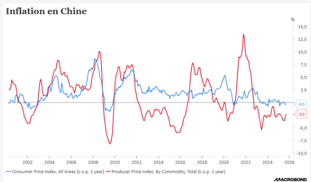 Vanmorgen werden cijfers over consumenten- en producentenprijzen gepubliceerd, die bevestigen dat de deflatoire druk aanhoudt. In september daalden de producentenprijzen met 2,3% op jaarbasis, tegenover een daling van 2,9% in augustus. Deze lichte verbetering is positief en weerspiegelt de inspanningen van de overheid om prijsconcurrentie te beperken. De consumentenprijsindex daalde met 0,3% op jaarbasis, tegenover een daling van 0,4% in augustus. Maar ondanks deze verbetering blijven de deflatoire spanningen bestaan. De kerninflatie, exclusief volatiele voedsel- en energieprijzen, bedroeg 1% in september, tegenover 0,9% in augustus – het hoogste niveau in 19 maanden.eren en deze instellingen in staat te stellen hun mandaat te vervullen.
