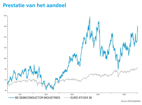 Volgens KBC Securities-analist Wim Lewi blijft BESI goed gepositioneerd dankzij sterke vraag in strategische segmenten en een solide orderboek. De analist handhaaft een "Houden"-aanbeveling voor het aandeel BESI en stelt een koersdoel van 125 euro.