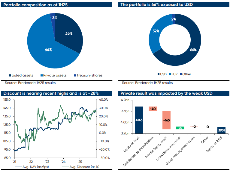 Brederode, de Luxemburgse internationale investeringsmaatschappij, heeft deze maand een hogere aanbeveling gekregen. Drie maanden geleden werd het aandeel nog teruggezet naar “Houden” vanwege zorgen over de zwakke Amerikaanse dollar, die de sterke onderliggende prestaties van de private-equityportefeuille dreigde te overschaduwen. Die vrees bleek terecht: de koers daalde met zo’n 5%. Maar in het derde kwartaal bleef de EUR/USD neutraal en bevestigden de resultaten een sterke operationele dynamiek.