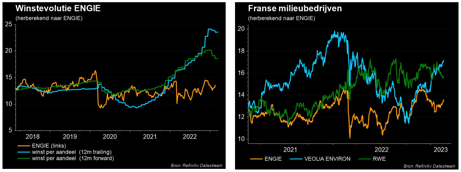Het Franse energiebedrijf Engie zag de winst in 2022 fors stijgen dankzij hogere aardgas- en elektriciteitsprijzen. De netto-recurrente-inkomsten klokten af op 5,2 miljard euro, tegenover 2,9 miljard euro in 2021, terwijl de bedrijfswinst (EBIT) steeg van 6,1 naar 9 miljard euro. Die cijfers komen na de Europese overwinstbelastingen (900 miljoen euro) en 1,1 miljard euro inkomstenbeperkingen op kernenergie en waterkracht in België en Frankrijk. Engie verhoogde de verwachtingen tussen 2023 en 2025 tot boven de analistenverwachting. En het betaalt ook nog eens een pak dividend uit, ziet financieel-econoom Tom Simonts.