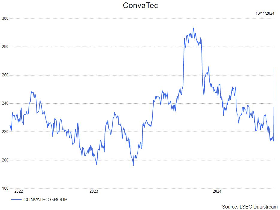 - Convatec rapporteerde over de eerste 10 maanden van 2024 een organische groei van 7,7%. Dit is beter dan de gemiddelde analistenverwachtingen die uitgingen van 6,5%-groei.