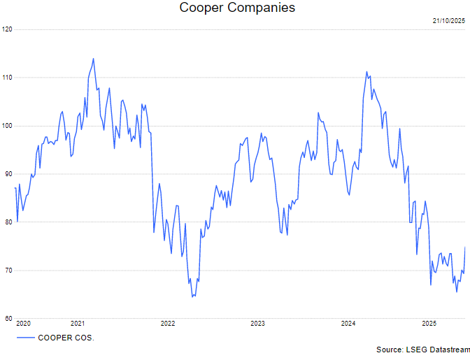 Daarentegen zou de contactlenzendivisie meer interesse kunnen wekken bij potentiële kopers. De marktpositie van Cooper in deze sector is sterk, wat het aantrekkelijk maakt. Toch waarschuwt Noyens dat deze dominantie ook mededingingsproblemen kan veroorzaken bij een eventuele overname. Volgens een artikel in de Wall Street Journal heeft sectorgenoot Bausch & Lomb al interesse getoond in de contactlenzendivisie van Cooper.