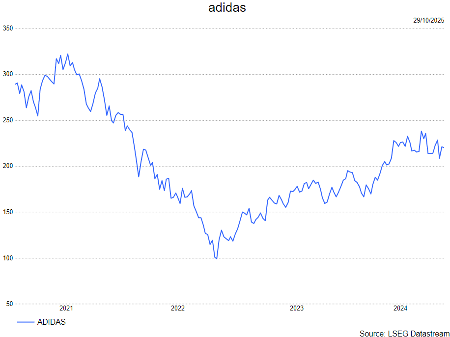 Het Duitse adidas is de tweede producent ter wereld van sportartikelen. Het heeft schoen- en kledingmerken en het vervaardigt ook sportuitrusting. Adidas verkoopt haar producten wereldwijd zowel via eigen winkels, winkels van derden als via e-commerce.