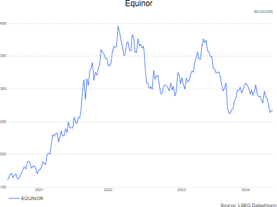 Equinor presteerde in het derde kwartaal operationeel sterk, met solide productie en strikte kostenbeheersing. Tegelijkertijd maken wij ons zorgen over de structurele daling van de winstgevendheid, die wordt veroorzaakt door lagere olie- en gasprijzen, hogere afschrijvingen, een afnemende bijdrage van trading en marketing, en een verwachte daling van het uitkeringsrendement. De waardering van Equinor ligt relatief hoog ten opzichte van sectorgenoten, terwijl de vooruitzichten voor groei en aandeelhoudersrendement onder druk staan. Hierdoor achten wij Equinor kwetsbaar voor verdere prijsdalingen, en achten wij het huidige uitkeringsbeleid niet houdbaar zonder hogere prijzen of aanvullende kasstromen uit andere bronnen.