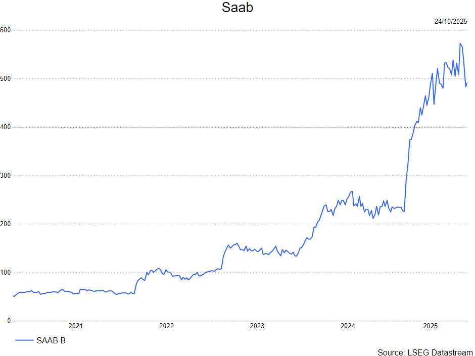 KBC Securities-analist Andrea erkent de sterke uitvoering en visibiliteit dankzij de orderbacklog, maar blijft kritisch over de waardering van het aandeel. Met een 12-maands forward koers-winstverhouding van circa 40x, tegenover een sectorgemiddelde van 26x, acht hij het aandeel te duur. Ondanks de opwaarts bijgestelde omzetprognose en solide kwartaalresultaten, ziet hij betere kansen bij meer gediversifieerde Europese defensiespelers. Andrea handhaaft zijn verkoop-aanbeveling en koersdoel van 431 Zweedse kronen.