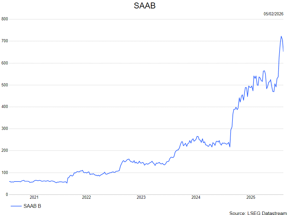 Saab gaf geen expliciete guidance voor 2026, maar verhoogde wel zijn middellangetermijndoelen voor de periode 2023‑2027: