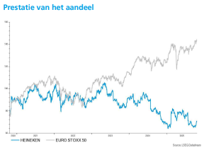Volgens Wim Hoste blijft Heineken aantrekkelijk door zijn organische winstgroeipotentieel, ondersteund door kostenbesparingen. Toch maakt de volatiele volumetrend van de afgelopen jaren de investeringscase iets minder overtuigend. Hij handhaaft een “Opbouwen”-aanbeveling voor het aandeel Heineken, met een koersdoel van 85 euro.