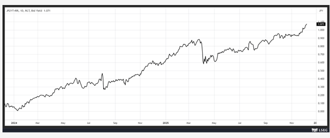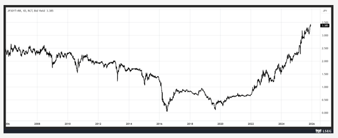 En ja, de stijging van de Japanse obligatierentes draagt ook bij aan deze spanning. Niet alleen de 2-jaars rente steeg, maar ook het rendement op de 20-jaars obligatie bereikte een recordniveau, omdat beleggers zich zorgen maken over het begrotingsbeleid van de nieuwe regering.