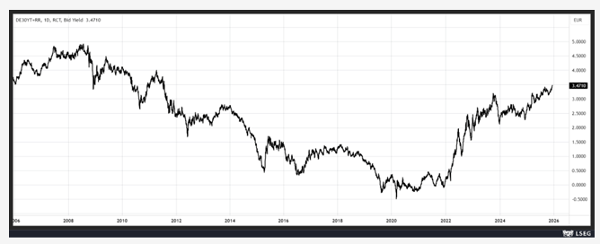 Maar het zou te simplistisch zijn om het daarbij te laten. De beweging van gisteren begon namelijk bij de Duitse 30-jaarsobligatie.