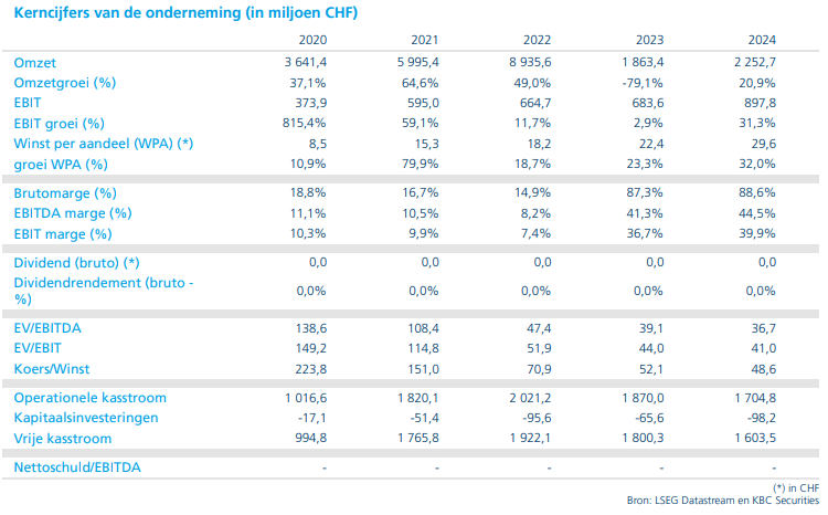 De netto-omzet kwam uit op 598,4 miljoen euro, wat 20% hoger is dan een jaar eerder en 23% hoger op constante wisselkoersbasis. Dat cijfer ligt boven zowel de verwachting van KBC Securities (585 miljoen euro) als de gav (592,1 miljoen euro). Volgens het management zal de omzetgroei in de tweede helft van 2025 in lijn liggen met deze update, wat neerkomt op een meevaller van 14 miljoen euro ten opzichte van de huidige gav (inclusief USD-EUR-effecten).