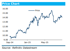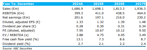 Het is belangrijk om te weten dat dit gaat om een ‘sponsored research’: Cementir betaalt KBC Securities om het aandeel op te volgen, maar het mag geen invloed uitoefenen op de analyses van KBC Securities.