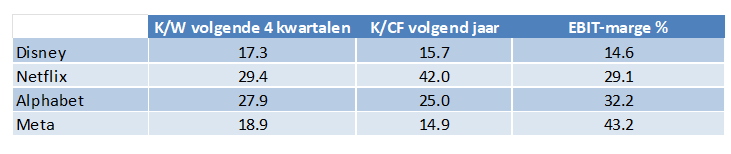 De Walt Disney Company noteert tegen een verwachte koers-winstverhouding van 17.3 over de volgende vier kwartalen. Dit is aanzienlijk goedkoper dan Netflix. Netflix is evenwel een stuk meer winstgevend en heeft niet de ‘last’ van de structureel dalende lineaire netwerken. Bovendien is het businessmodel van Disney met zijn themaparken en cruises beduidend meer kapitaalsintensief.