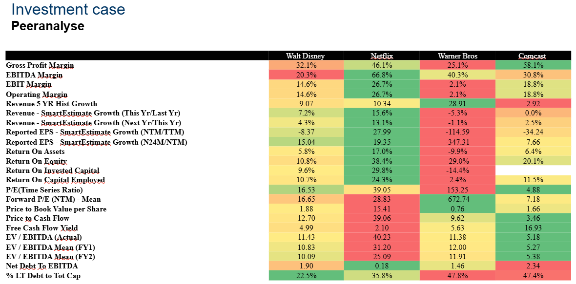 The Walt Disney Company is een wereldspeler in media en entertainment, actief op het gebied van contentproductie, themaparken, televisiestations en streamingdiensten. Het heeft één van de grootste portefeuilles van intellectueel eigendom (intellectual property, IP) ter wereld, waardoor het content op meerdere platforms ten gelde kan maken en een geïntegreerde consumentenervaring kan bieden.