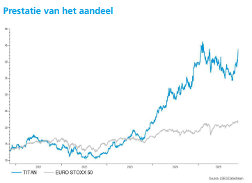 Wim Hoste blijft positief over de vooruitzichten van TITAN, gesteund door de sterke balans, ambitieuze groeiplannen en focus op duurzaamheid. Hij verhoogt het koersdoel van 45 euro naar 55 euro en handhaaft een "Opbouwen"-aanbeveling voor het aandeel.