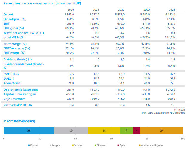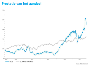 Volgens KBC Securities-analist Jacob Mekhael blijft UCB een aantrekkelijk aandeel dankzij de sterke prestaties van Bimzelx, de veelbelovende pijplijn en de uitzonderlijke winstgroeivooruitzichten. De analist verhoogt zijn piekverkoopraming voor de atopische dermatitis-franchise van 2 miljard euro naar 4,4 miljard euro. Ook houdt hij nu rekening met een verlengde patentbescherming voor Bimzelx tot 2035. Op basis daarvan verhoogt hij zijn koersdoel van 249 euro naar 270 euro en bevestigt hij zijn "Opbouwen"-aanbeveling voor het aandeel UCB.