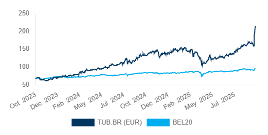 Livio wijst erop dat Tubizes waardering sterk samenhangt met de prestaties van UCB, waarvan het de meerderheidsaandeelhouder is. Op 1 oktober 2025 verhoogde hij het koersdoel voor UCB van 214 euro naar 249 euro. Die verhoging is gebaseerd op sterke commerciële vooruitzichten en verminderde concurrentiedruk, nu fase 3-data van MoonLake Therapeutics minder overtuigend blijken dan die van UCB’s Bimzelx in een vergelijking tussen klinische studies.