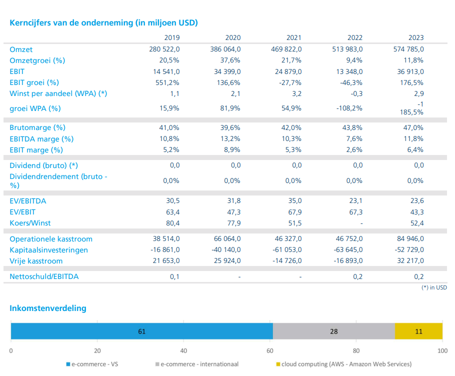 Tom Noyens is voornamelijk sterk positief verrast door de operationele marges. Deze kenden een mooie groei, voornamelijk gedreven door hun clouddivisie (AWS) en verbetering in de internationale e-commerce tak. Hoewel het management al aangaf dat het moeilijk zal zijn om de marges bij AWS ook de komende maanden zo sterk te blijven verhogen, is dit wel heel positief. Het geeft aan dat het vliegwielmodel waar ze nu al jaren werk van maken nu ook meer en meer haar vruchten afwerpt.