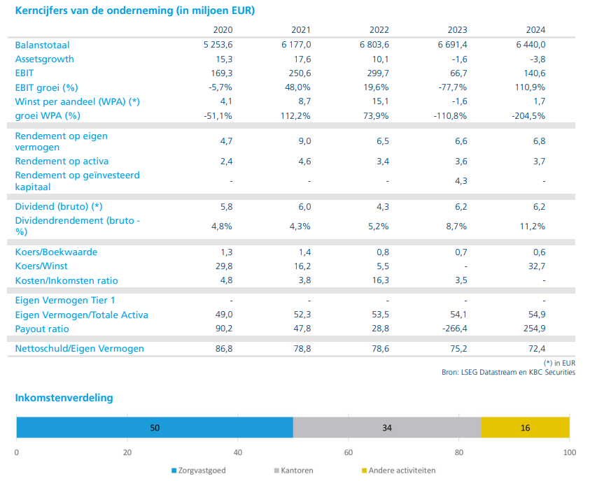 Lynn Hautekeete waardeert de strategie van Cofinimmo om het aandeel van zorgvastgoed in de portefeuille te verhogen. Deze activa leveren voorspelbare, geïndexeerde kasstromen op via zeer lange huurcontracten. De kantoorportefeuille, ondergebracht in een aparte dochteronderneming, zal geleidelijk worden afgestoten. Hoewel dit proces traag verloopt in de huidige vastgoedmarkt, genereert het wel middelen om te investeren in de zorgpijplijn. Dit helpt om de schuldgraad onder controle te houden en onder de 45% te houden.