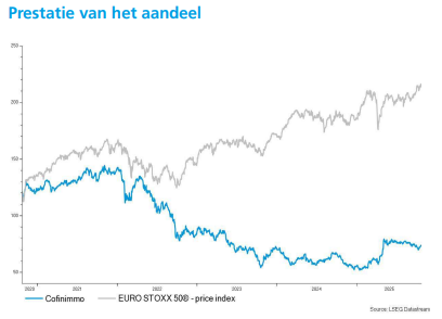Cofinimmo meldt in het derde kwartaal van 2025 hogere EPRA-winsten dan verwacht, dankzij lagere rentelasten en belastingen. De vastgoedgroep heeft inmiddels 75% van het desinvesteringsplan van 100 miljoen euro afgerond, terwijl de investeringen voorlopig achterblijven. Ondanks het feit dat de EPRA-resultaten ruim boven de minimumverwachting van 6,20 euro liggen, verhoogt Cofinimmo zijn prognose niet, meldt KBC Securities-analist Lynn Hautekeete.
