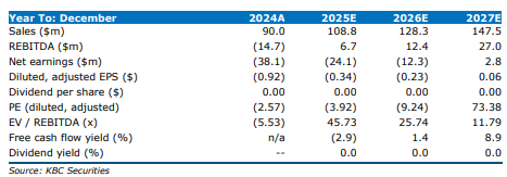 Het bedrijf handhaaft zijn omzetprognose voor 2025 van 108 tot 110 miljoen dollar. De kaspositie bedroeg 32 miljoen dollar (einde 2024: 46,8 miljoen dollar).