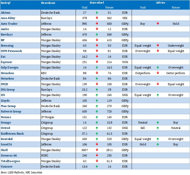 Nieuwe aanbevelingen voor aandelen